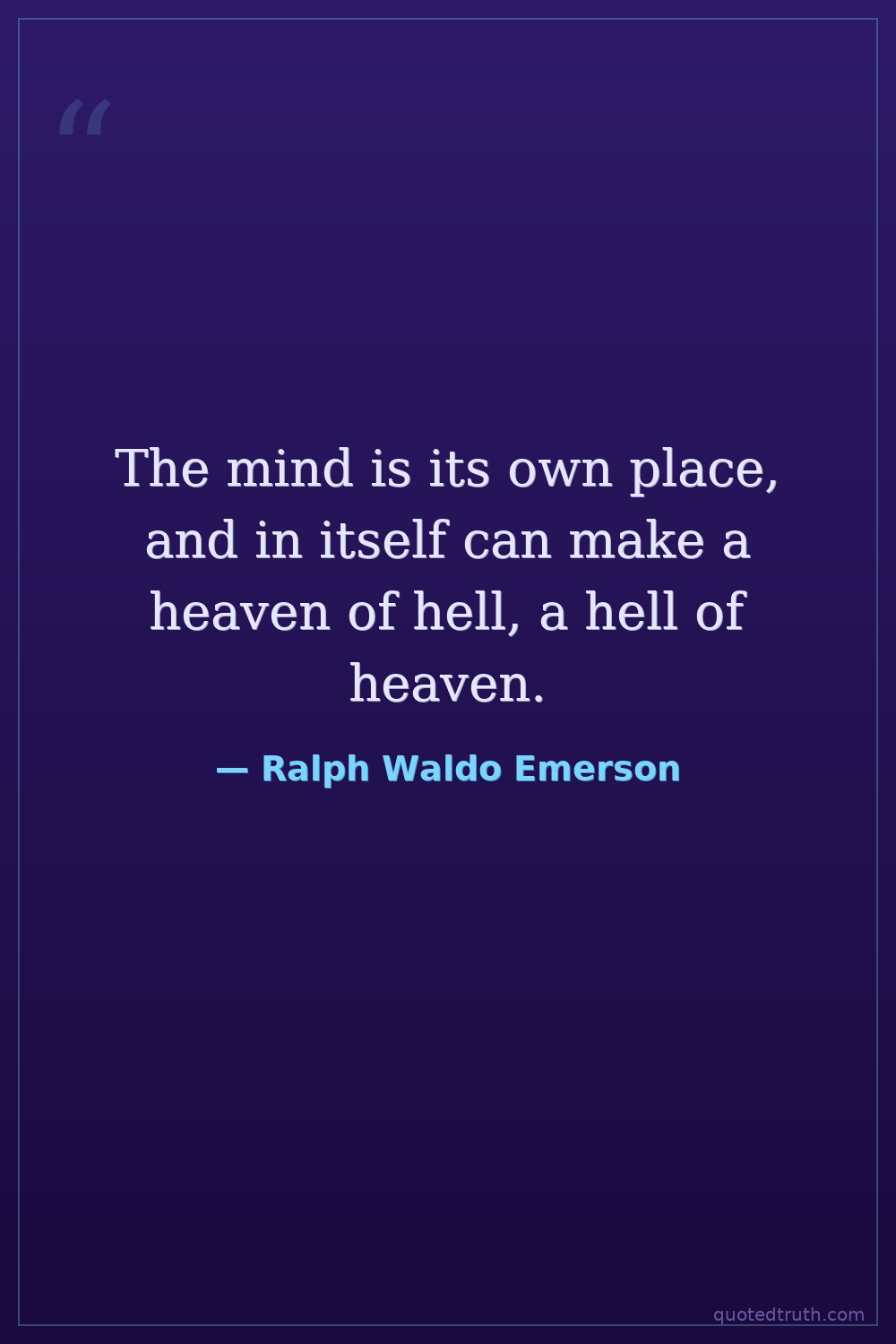 Often attributed, but this is a direct quote from John Milton's Paradise Lost. Emerson may have quoted it, but it's not his original thought.