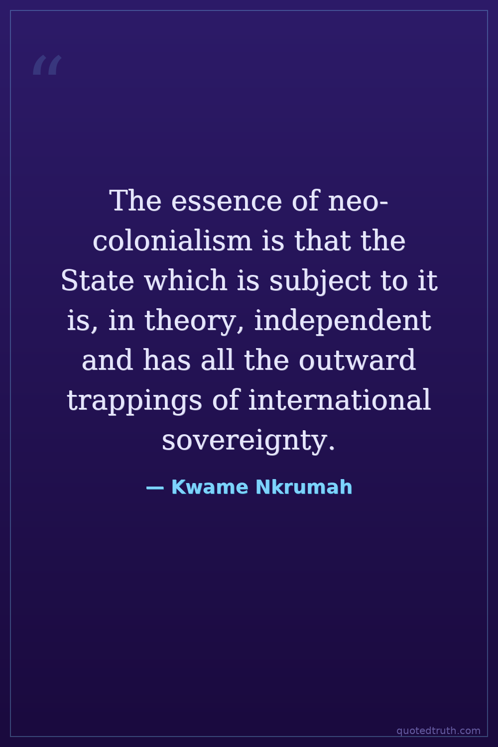 The essence of neo-colonialism is that the State which is subject to it is, in theory, independent and has all the outward trappings of international sovereignty.