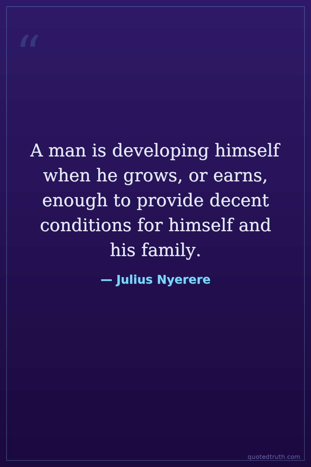 A man is developing himself when he grows, or earns, enough to provide decent conditions for himself and his family.