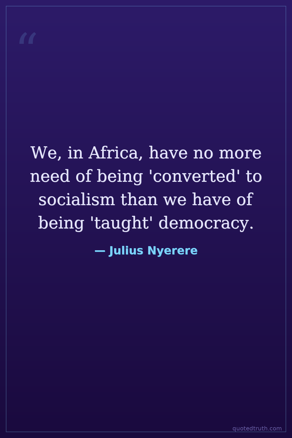 We, in Africa, have no more need of being 'converted' to socialism than we have of being 'taught' democracy.
