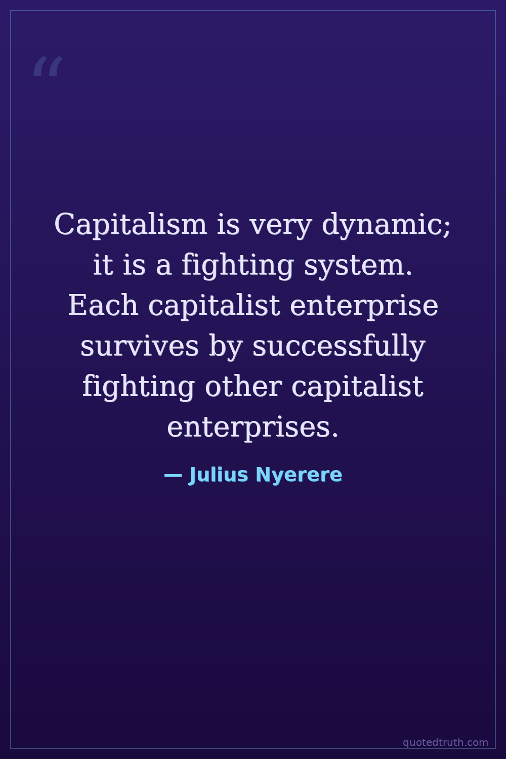 Capitalism is very dynamic; it is a fighting system. Each capitalist enterprise survives by successfully fighting other capitalist enterprises.