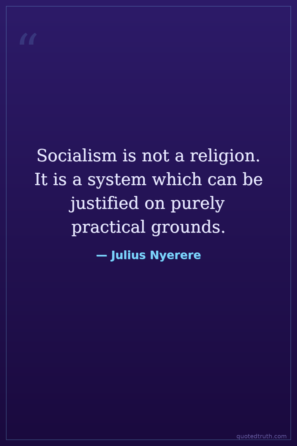 Socialism is not a religion. It is a system which can be justified on purely practical grounds.