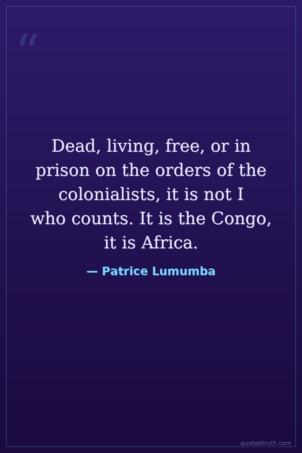 Dead, living, free, or in prison on the orders of the colonialists, it is not I who counts. It is the Congo, it is Africa.