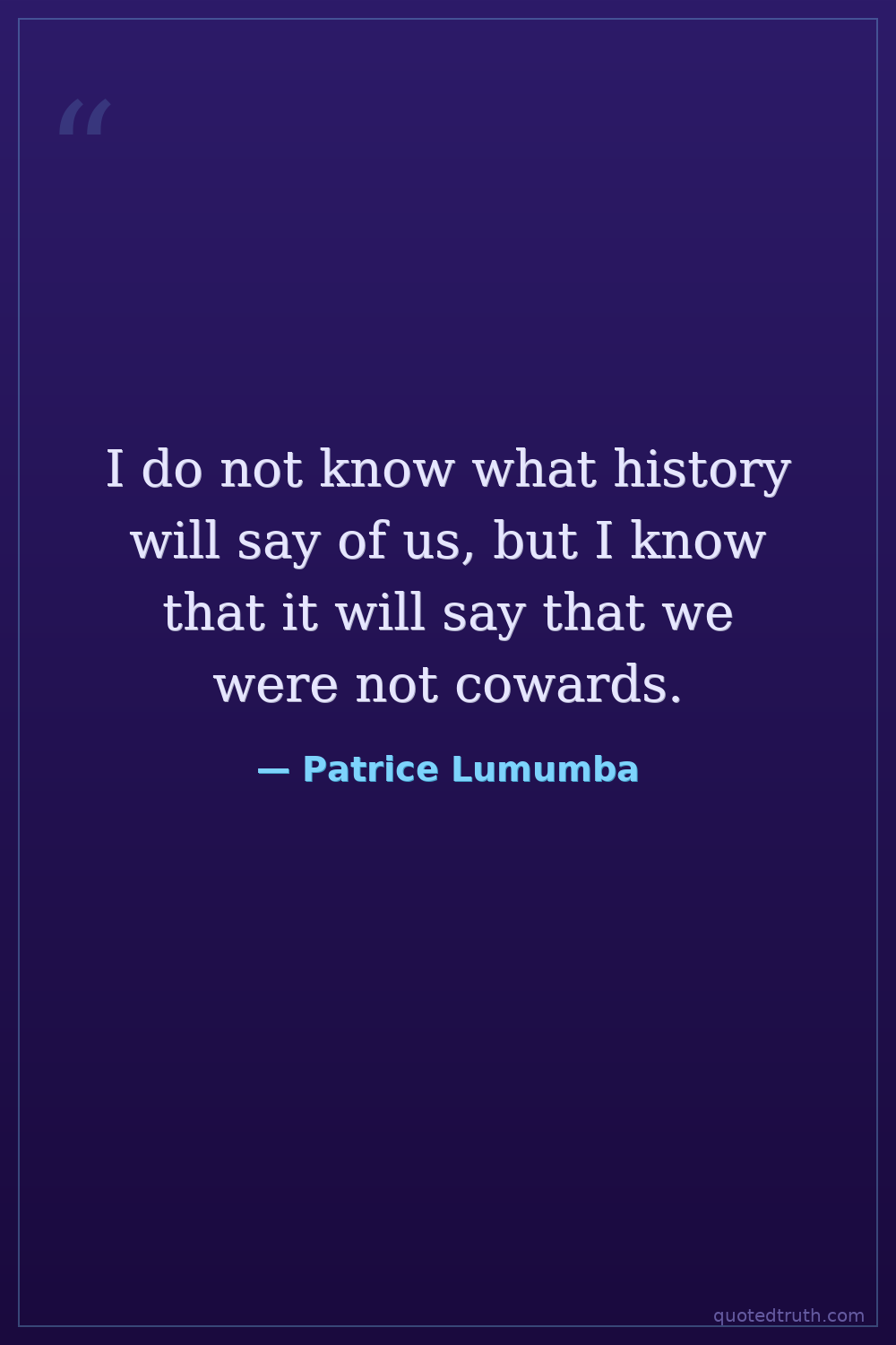 I do not know what history will say of us, but I know that it will say that we were not cowards.