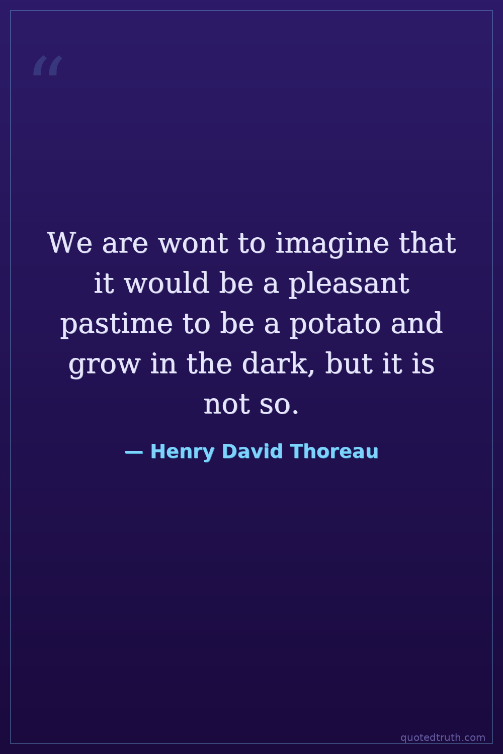 Humorous"The mass of men lead lives of quiet desperation. What is called resignation is confirmed desperation. From the desperate city you go into the desperate country, and have to console yourself with the b…"