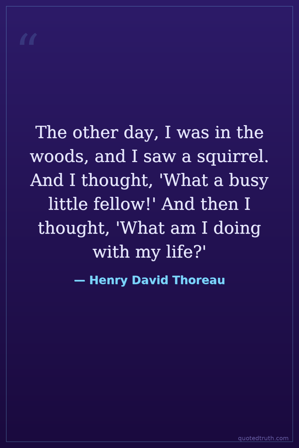 The other day, I was in the woods, and I saw a squirrel. And I thought, 'What a busy little fellow!' And then I thought, 'What am I doing with my life?'