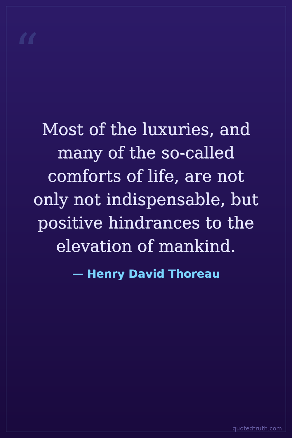 Most of the luxuries, and many of the so-called comforts of life, are not only not indispensable, but positive hindrances to the elevation of mankind.