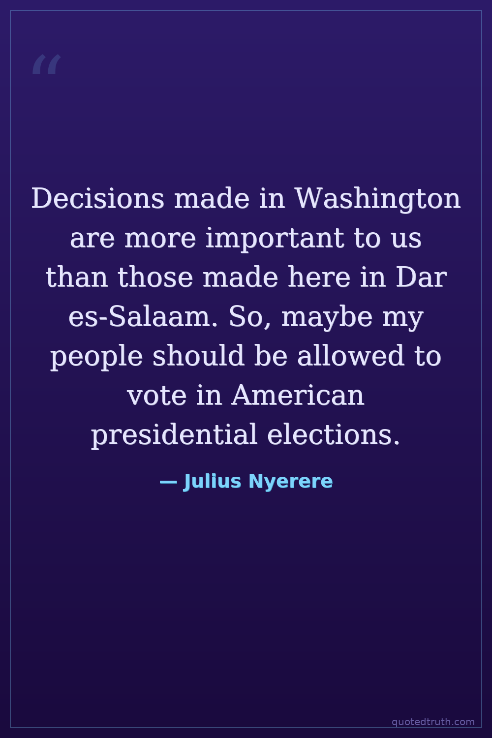 Decisions made in Washington are more important to us than those made here in Dar es-Salaam. So, maybe my people should be allowed to vote in American presidential elections.