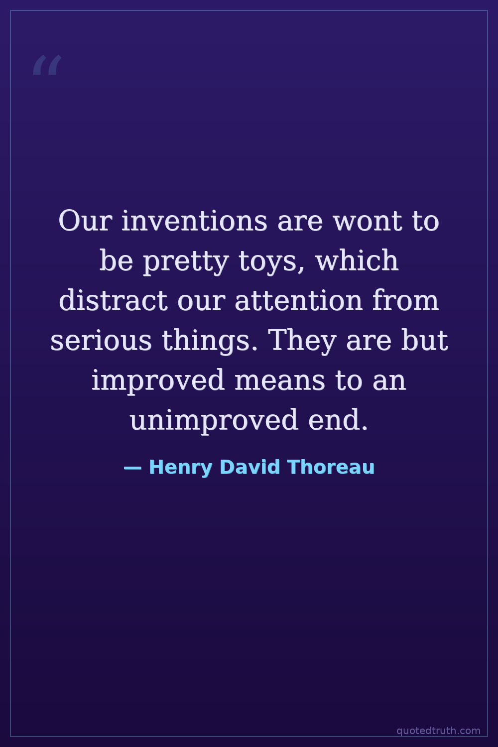 Our inventions are wont to be pretty toys, which distract our attention from serious things. They are but improved means to an unimproved end.