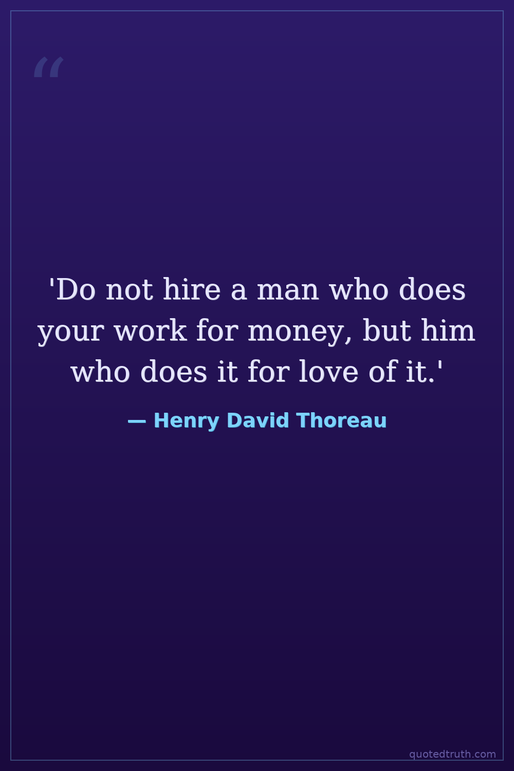 'Do not hire a man who does your work for money, but him who does it for love of it.'