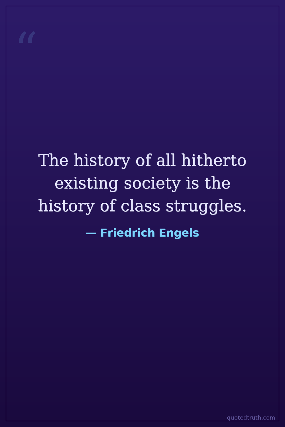 Humorous"The whole history of mankind (since the dissolution of primitive tribal society, holding land in common ownership) has been a history of class struggles, contests between exploiting and exploited, rul…"