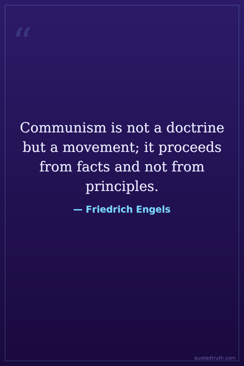 Communism is not a doctrine but a movement; it proceeds from facts and not from principles.