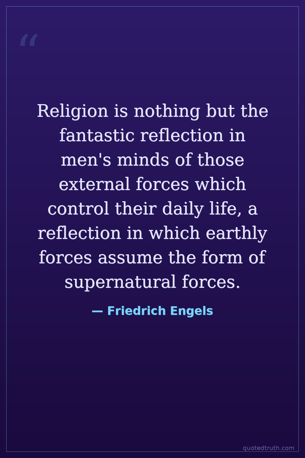 Religion is nothing but the fantastic reflection in men's minds of those external forces which control their daily life, a reflection in which earthly forces assume the form of supernatural forces.