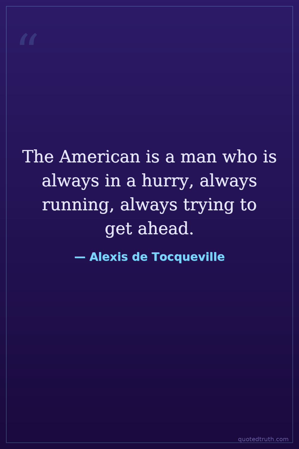 The American is a man who is always in a hurry, always running, always trying to get ahead.