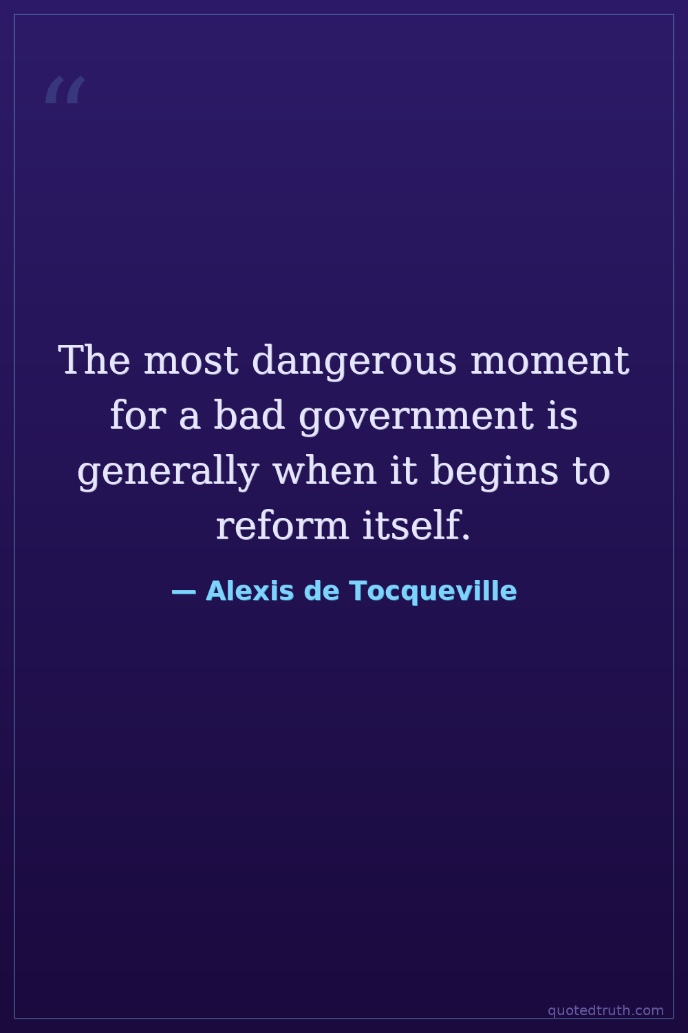 The most dangerous moment for a bad government is generally when it begins to reform itself.