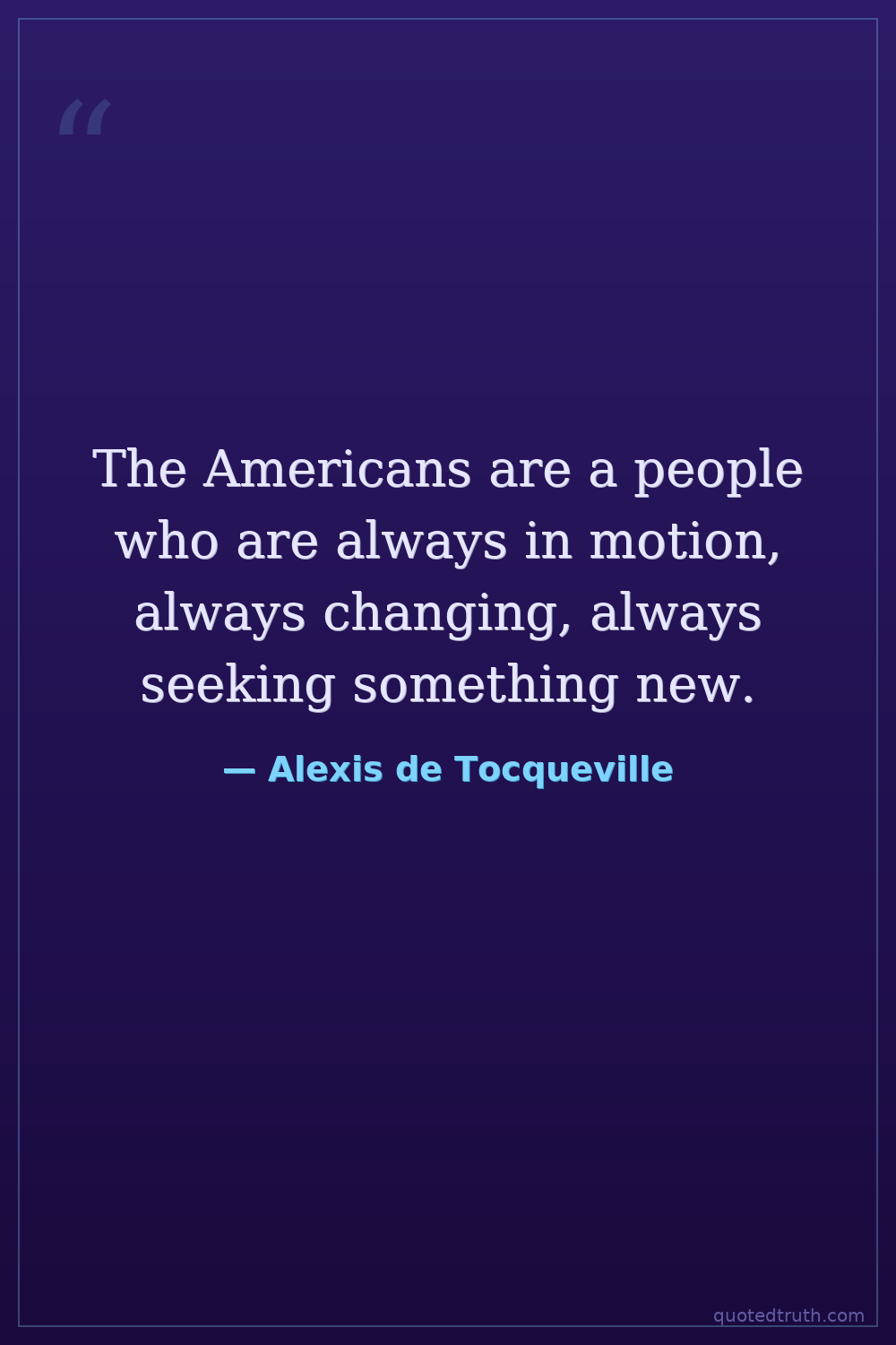 The Americans are a people who are always in motion, always changing, always seeking something new.