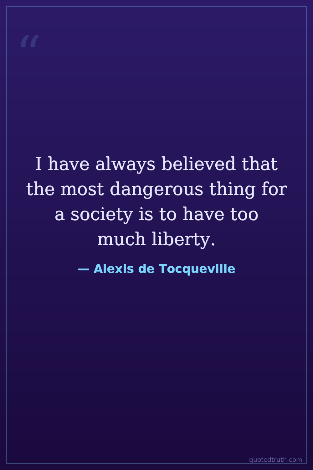 I have always believed that the most dangerous thing for a society is to have too much liberty.