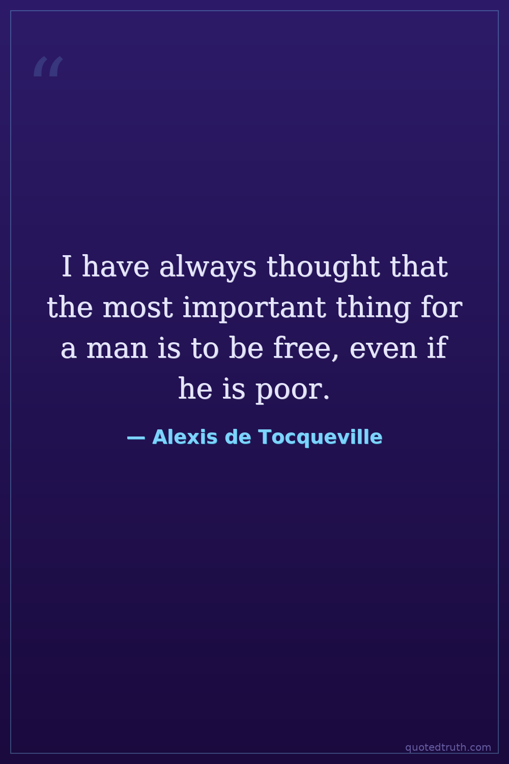 I have always thought that the most important thing for a man is to be free, even if he is poor.