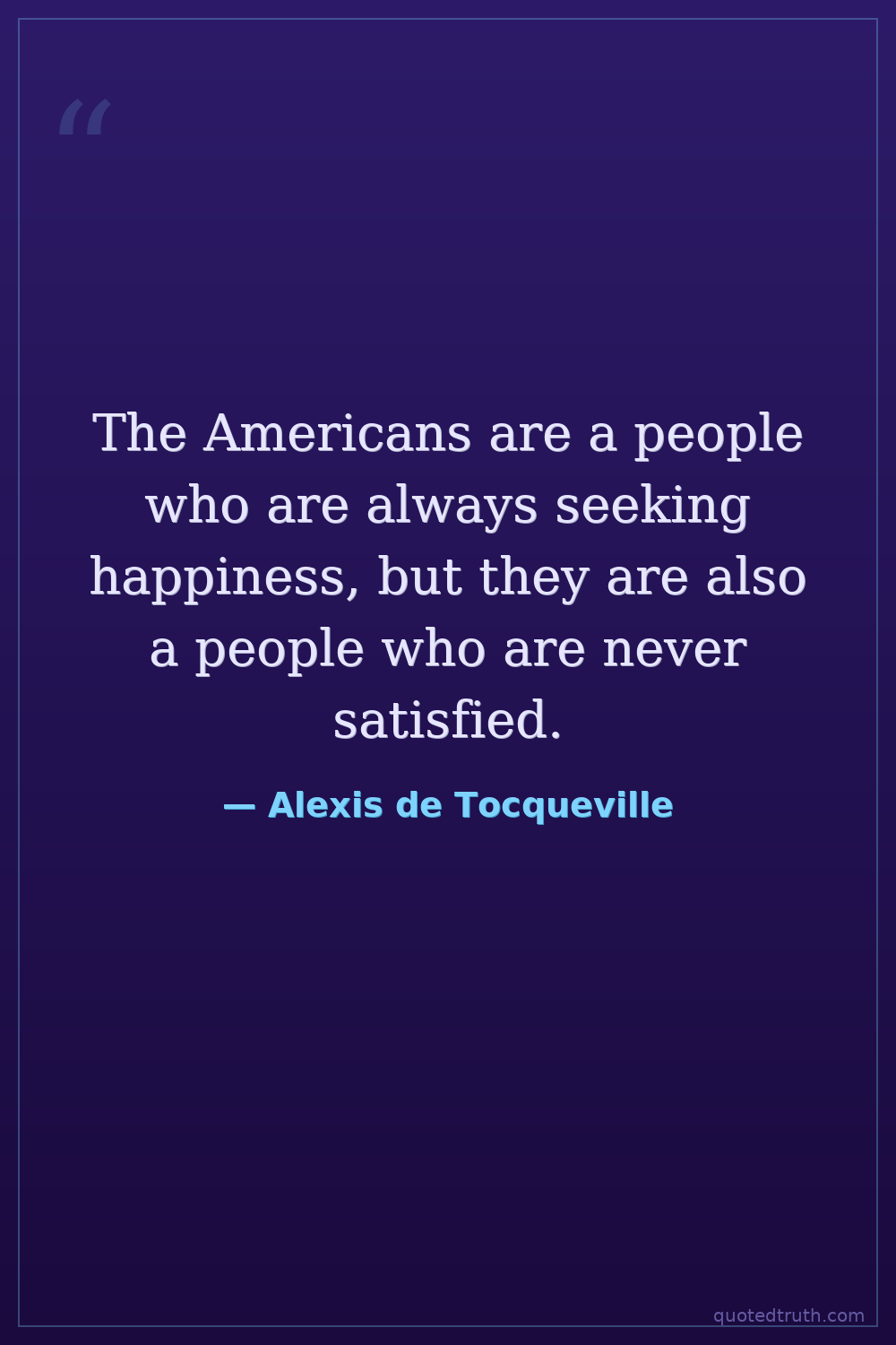 The Americans are a people who are always seeking happiness, but they are also a people who are never satisfied.