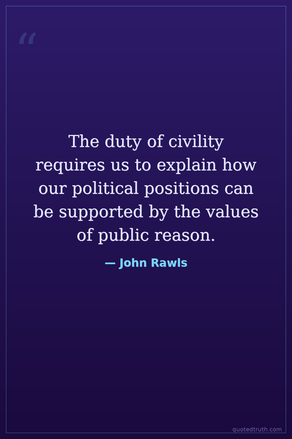 The duty of civility requires us to explain how our political positions can be supported by the values of public reason.