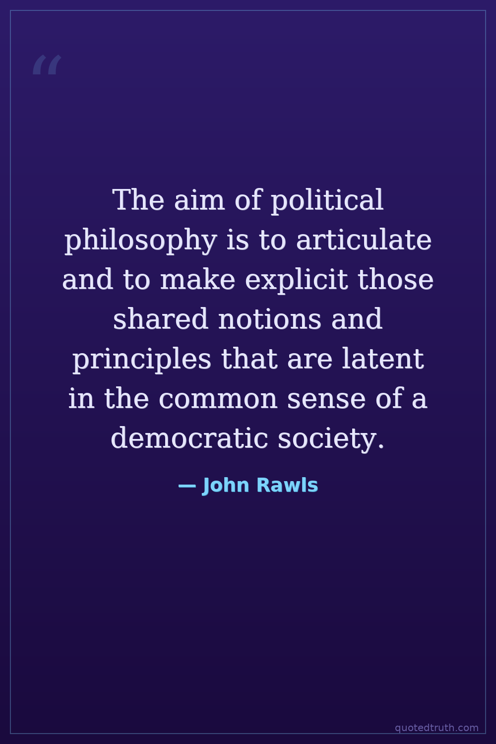 The aim of political philosophy is to articulate and to make explicit those shared notions and principles that are latent in the common sense of a democratic society.