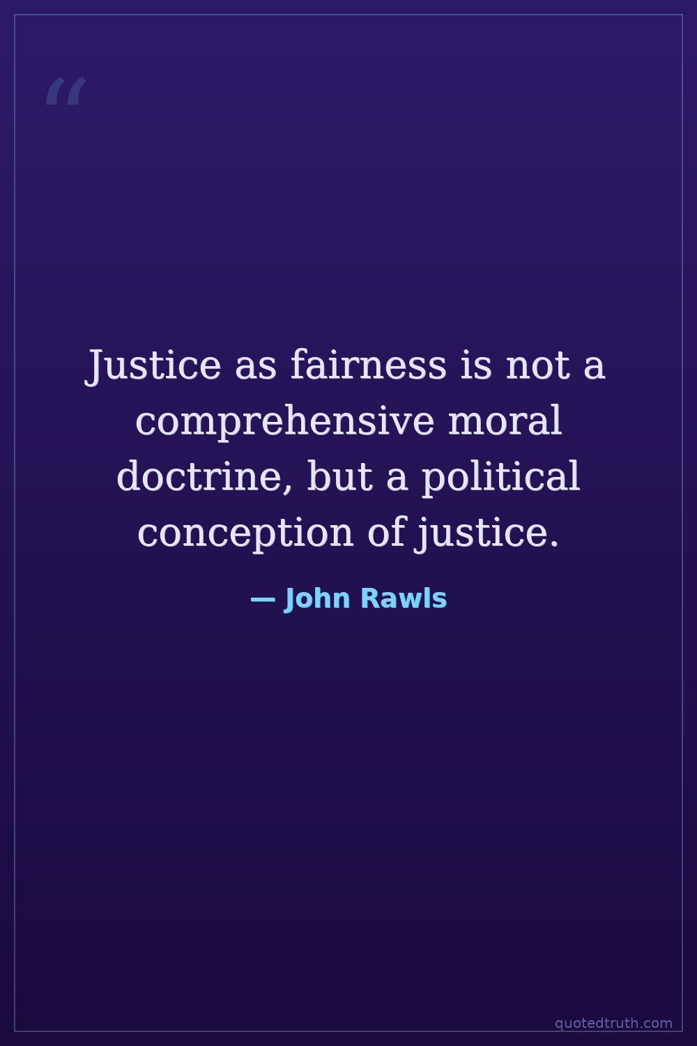 Justice as fairness is not a comprehensive moral doctrine, but a political conception of justice.