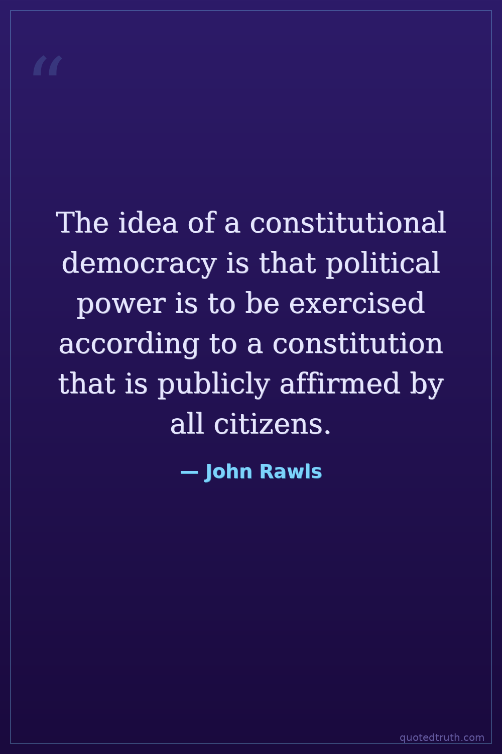 The idea of a constitutional democracy is that political power is to be exercised according to a constitution that is publicly affirmed by all citizens.