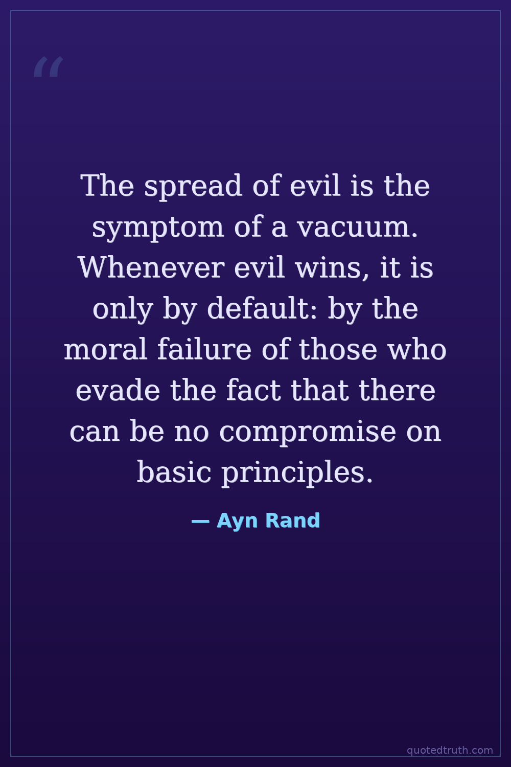 The spread of evil is the symptom of a vacuum. Whenever evil wins, it is only by default: by the moral failure of those who evade the fact that there can be no compromise on basic principles.