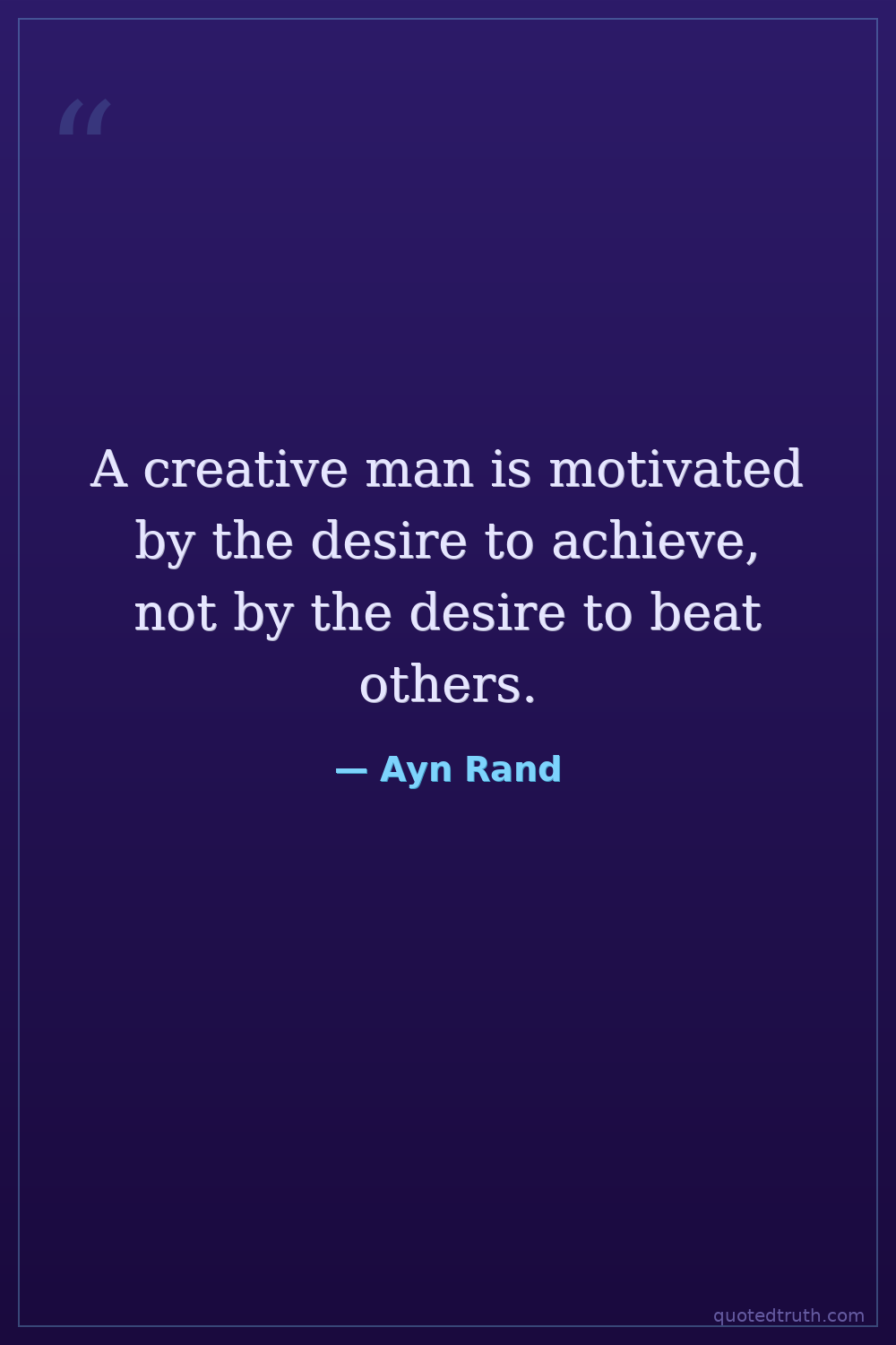 A creative man is motivated by the desire to achieve, not by the desire to beat others.