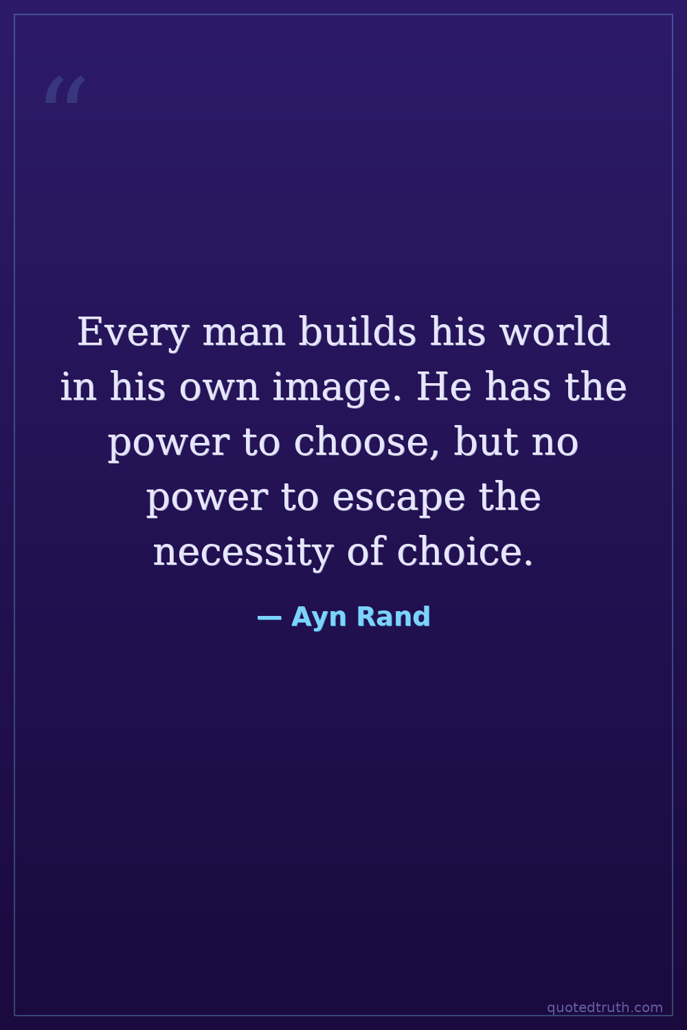 Every man builds his world in his own image. He has the power to choose, but no power to escape the necessity of choice.