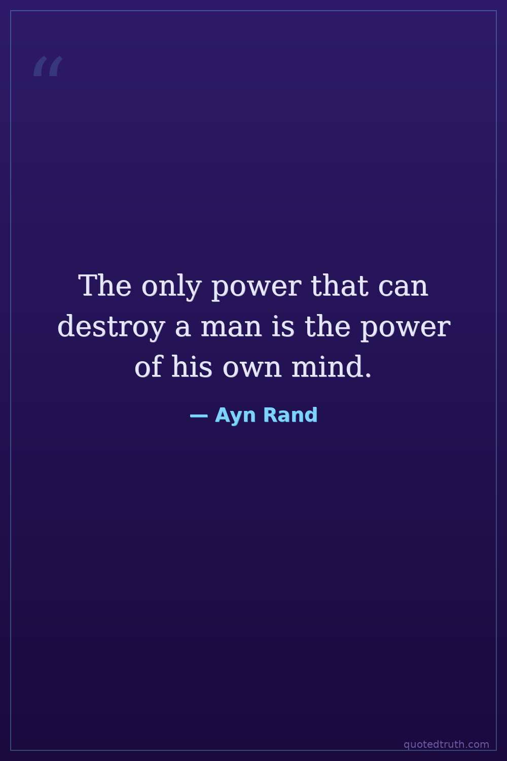Ayn Rand — "The only power that can destroy a man is the power of his own mind."