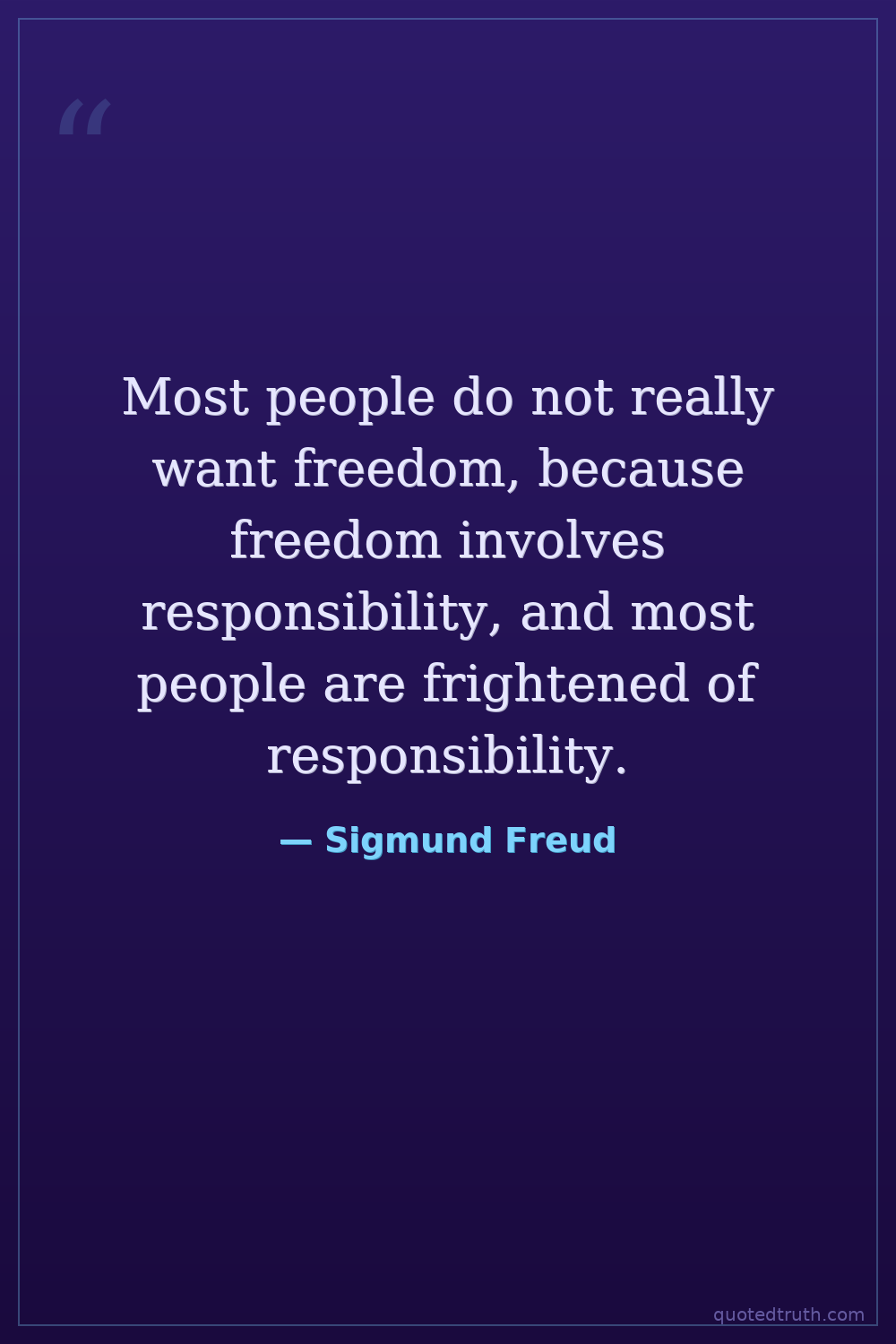 Most people do not really want freedom, because freedom involves responsibility, and most people are frightened of responsibility.
