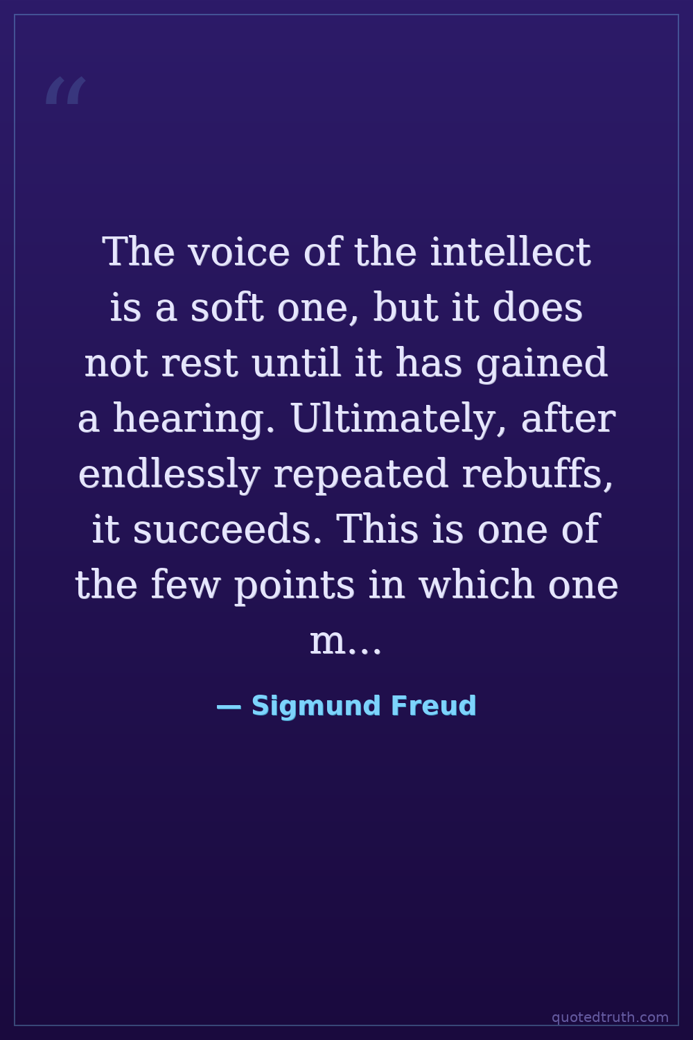 The voice of the intellect is a soft one, but it does not rest until it has gained a hearing. Ultimately, after endlessly repeated rebuffs, it succeeds. This is one of the few points in which one may be optimistic about the future of mankind. — Sigmund Freud Modern Psychoanalysis