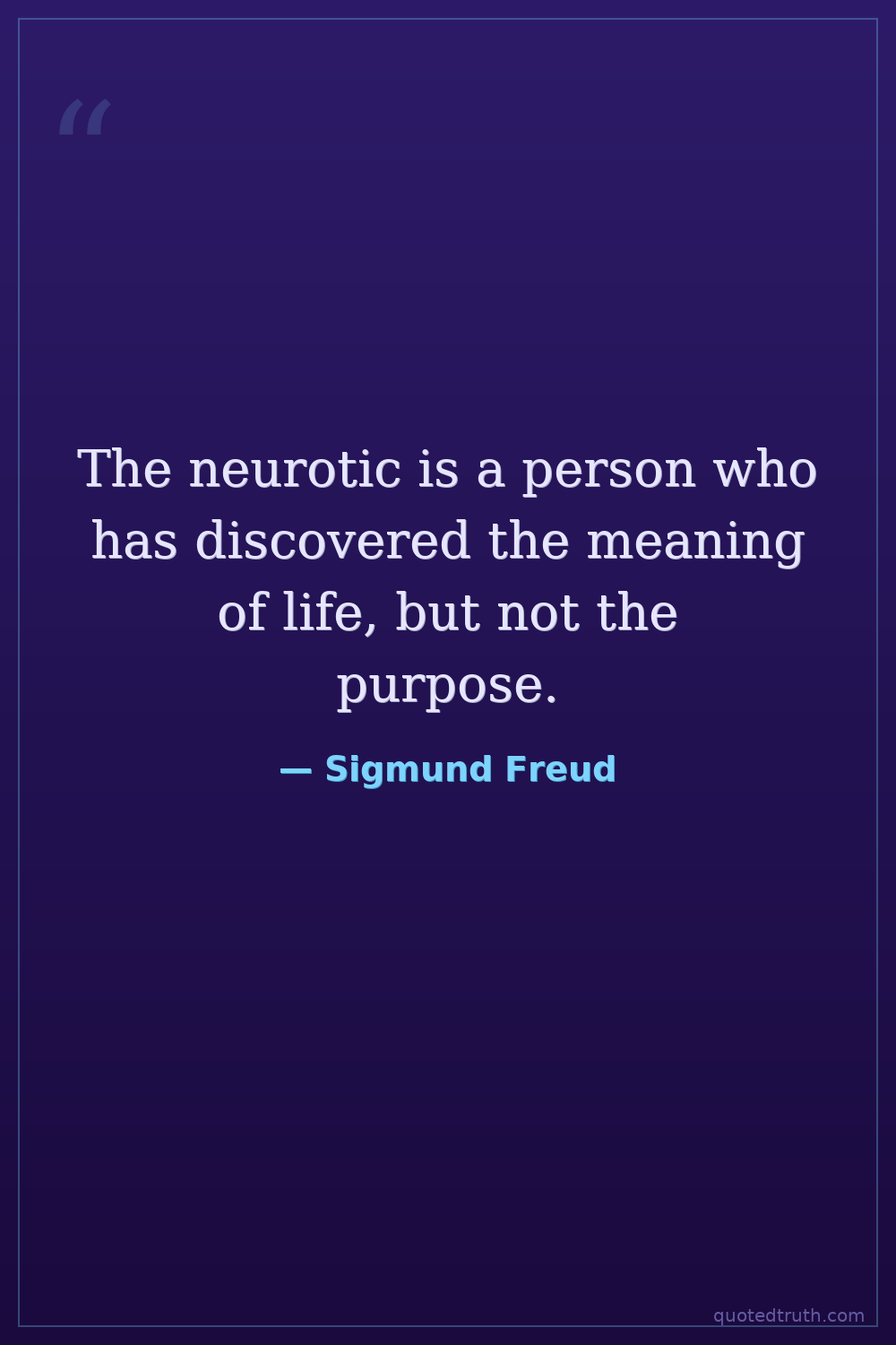 The neurotic is a person who has discovered the meaning of life, but not the purpose.