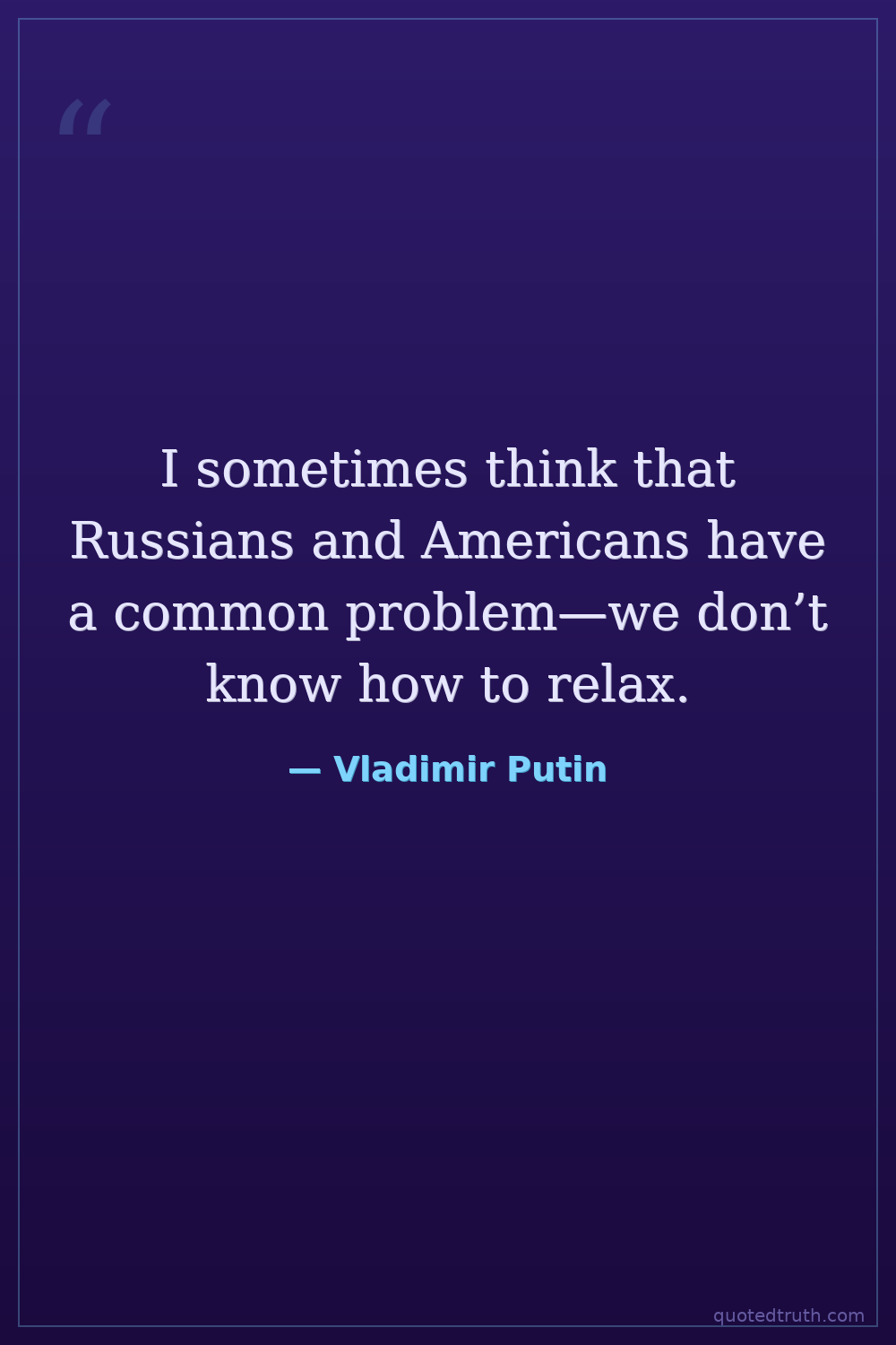 I sometimes think that Russians and Americans have a common problem—we don’t know how to relax.