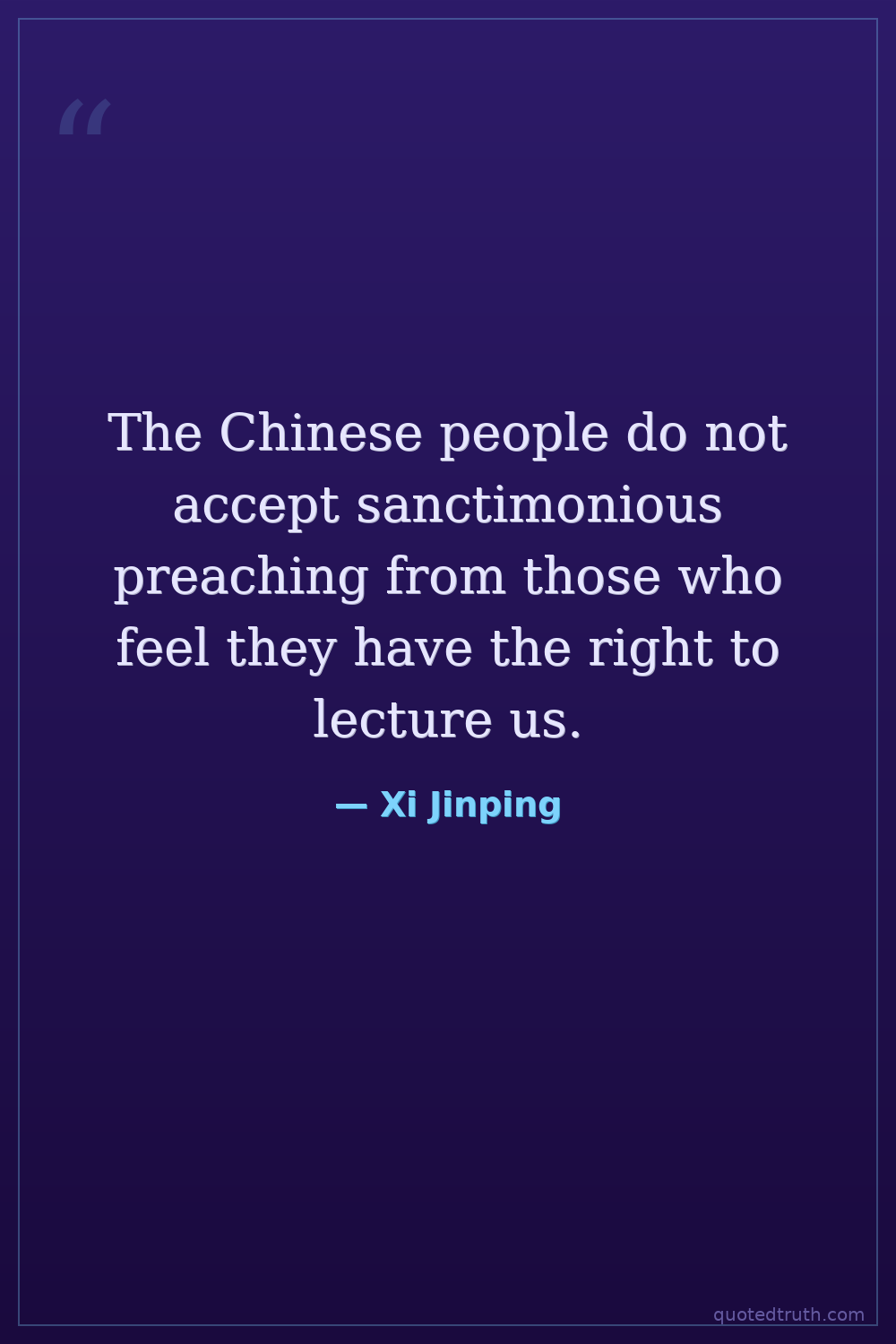 The Chinese people do not accept sanctimonious preaching from those who feel they have the right to lecture us.