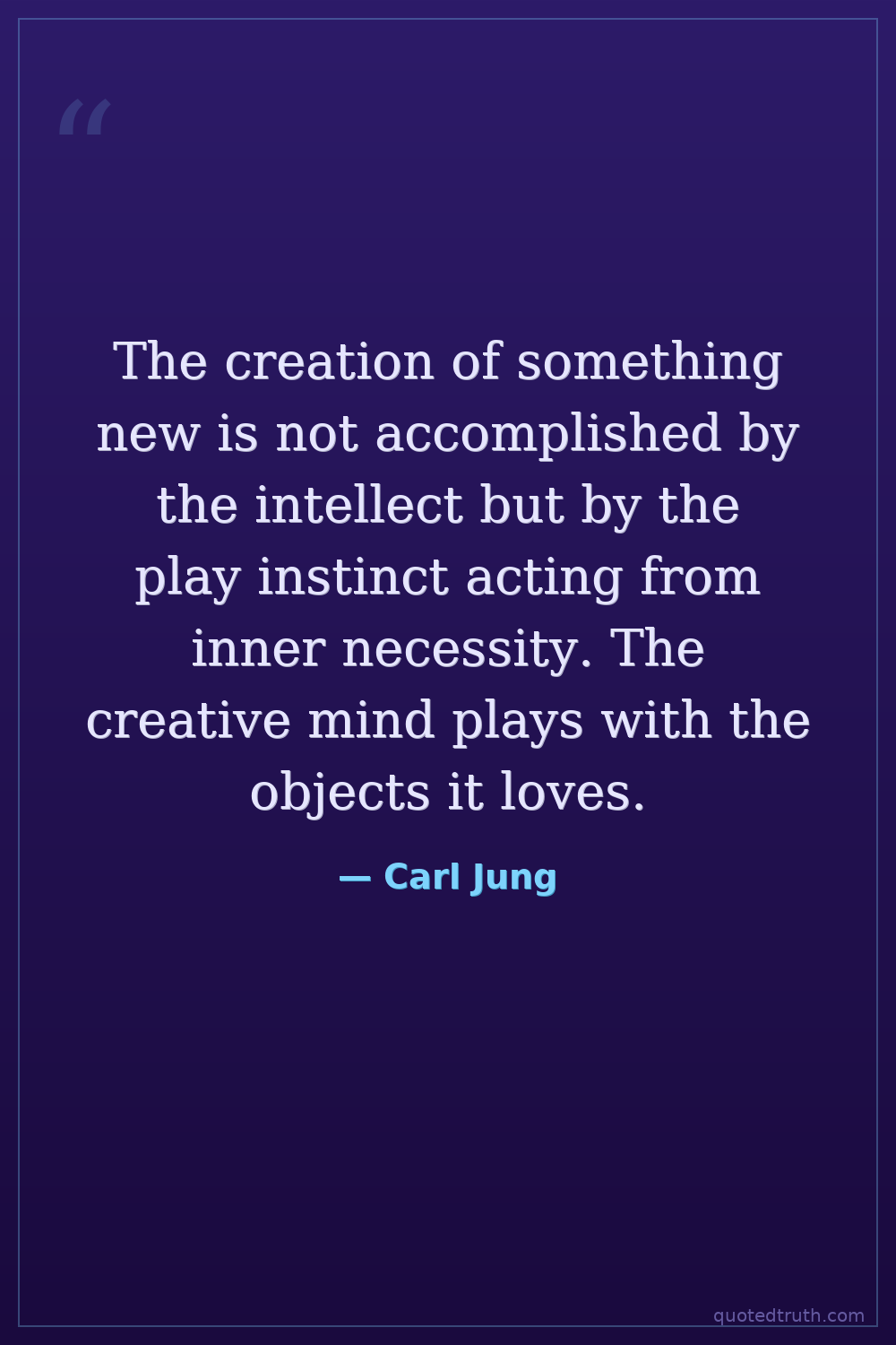 The creation of something new is not accomplished by the intellect but by the play instinct acting from inner necessity. The creative mind plays with the objects it loves.