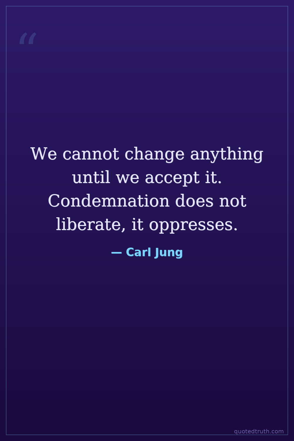 We cannot change anything until we accept it. Condemnation does not liberate, it oppresses.
