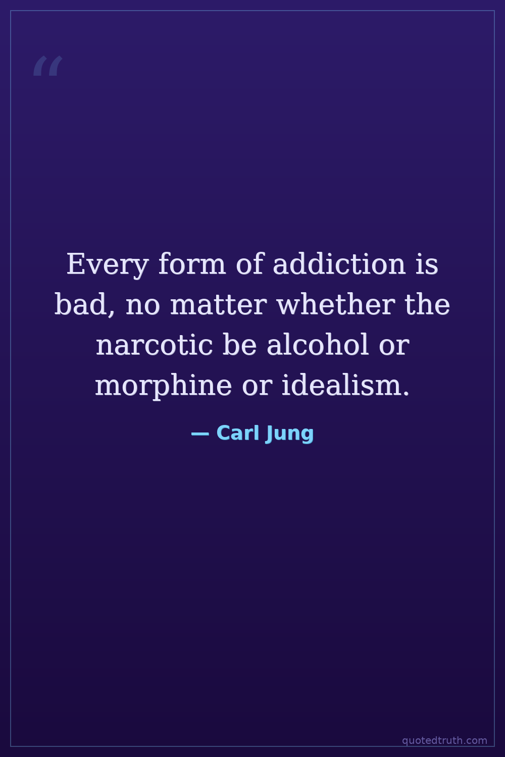 Every form of addiction is bad, no matter whether the narcotic be alcohol or morphine or idealism.