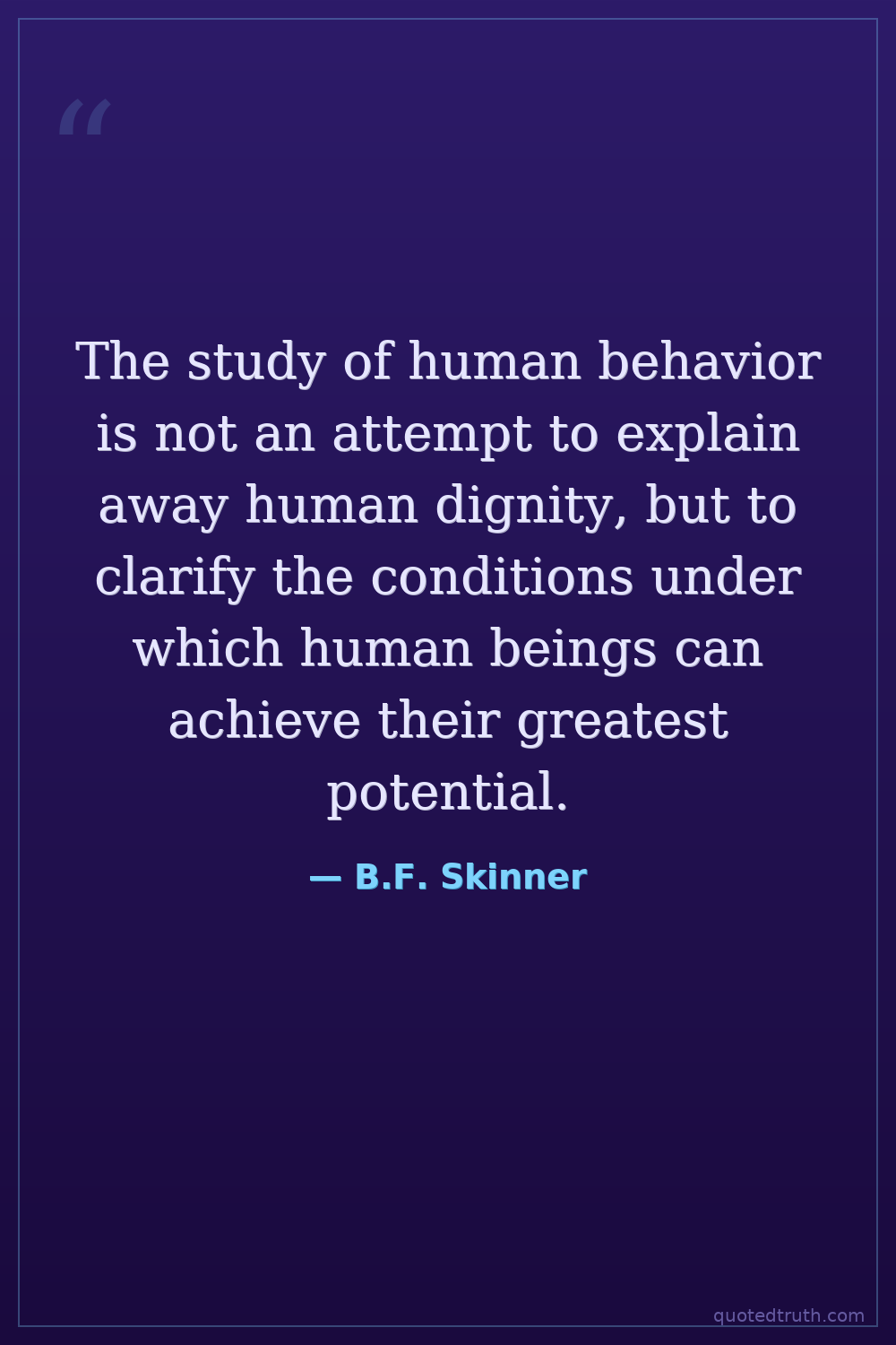 The study of human behavior is not an attempt to explain away human dignity, but to clarify the conditions under which human beings can achieve their greatest potential.