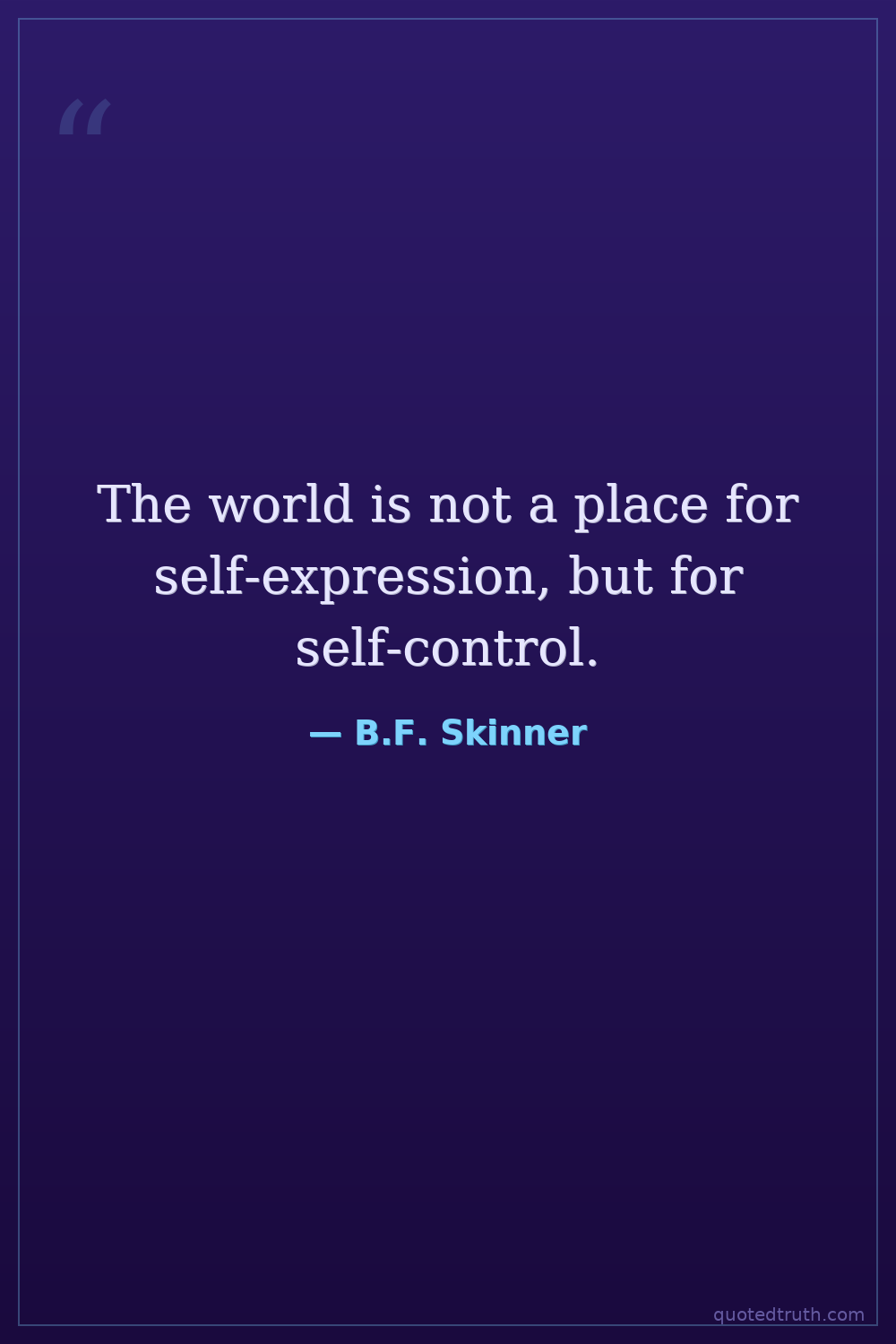 The world is not a place for self-expression, but for self-control.