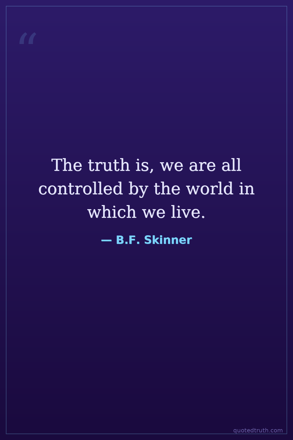 The truth is, we are all controlled by the world in which we live.