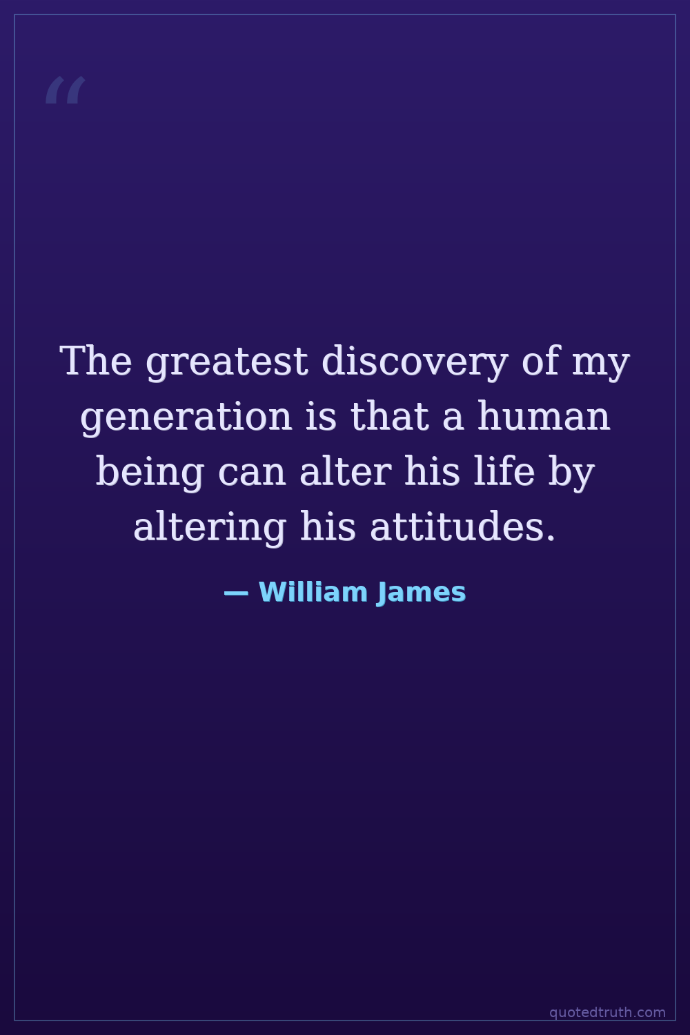 The greatest discovery of my generation is that a human being can alter his life by altering his attitudes.