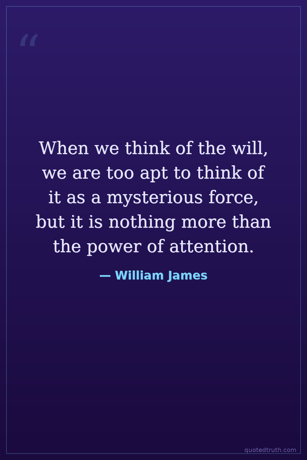 When we think of the will, we are too apt to think of it as a mysterious force, but it is nothing more than the power of attention.