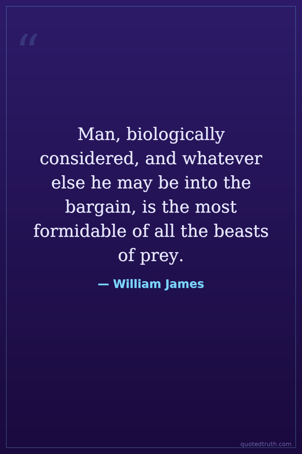 Man, biologically considered, and whatever else he may be into the bargain, is the most formidable of all the beasts of prey.