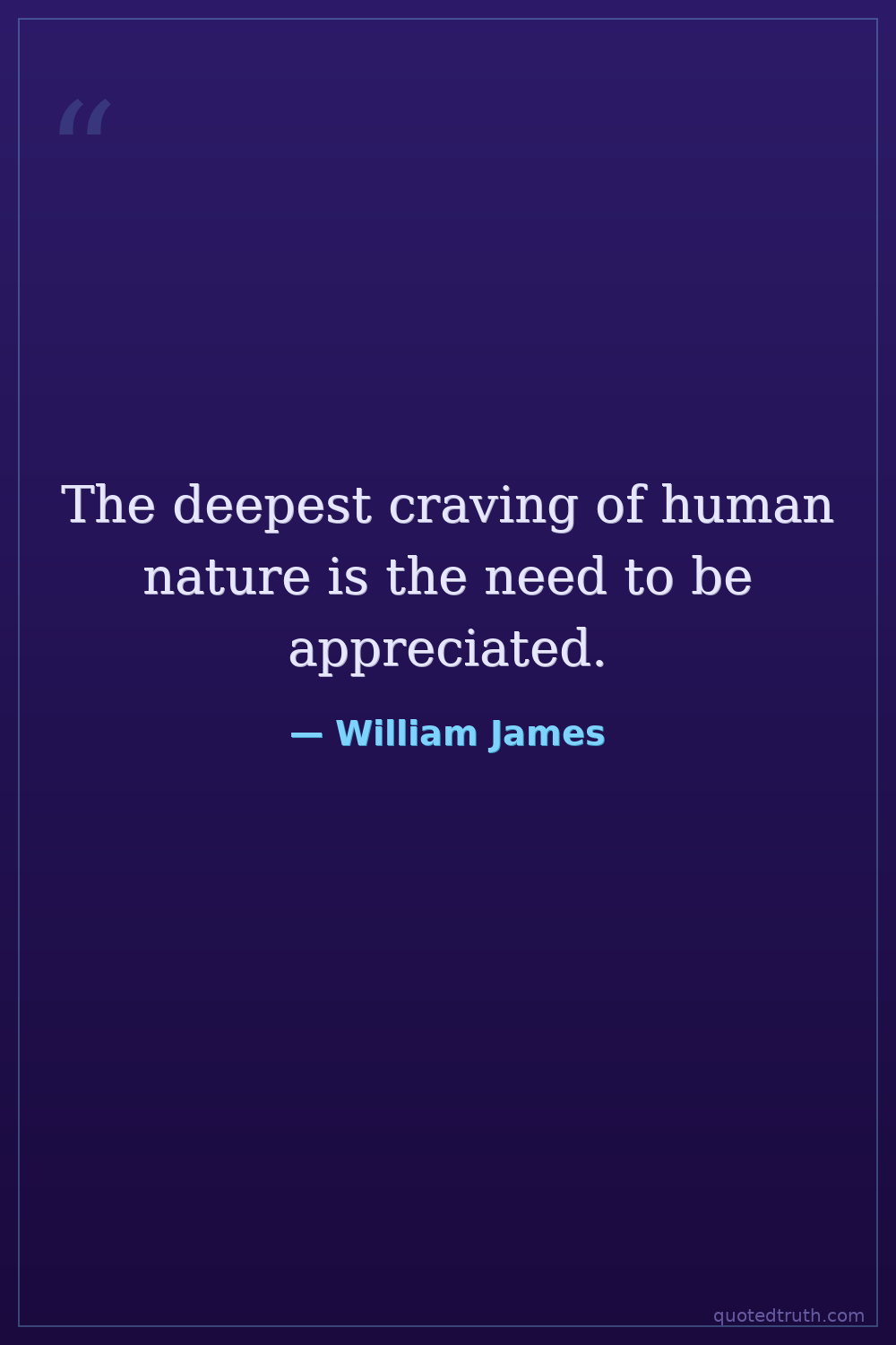 The deepest craving of human nature is the need to be appreciated.