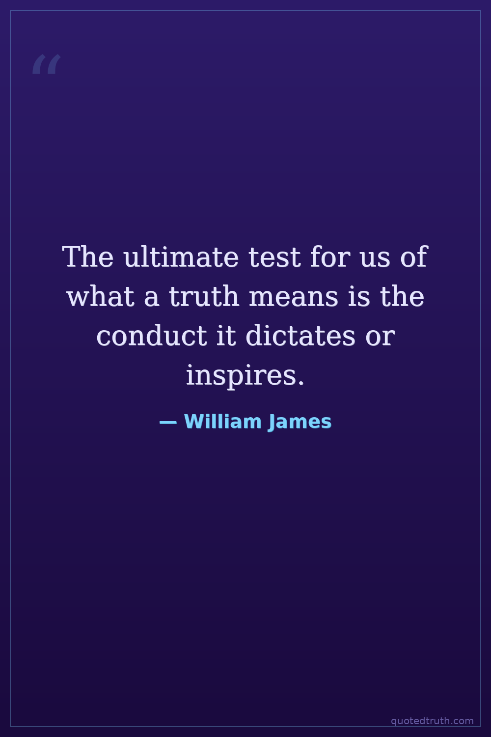 The ultimate test for us of what a truth means is the conduct it dictates or inspires.