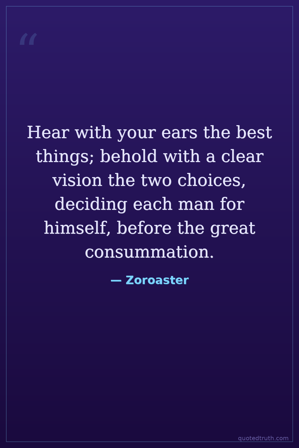 Hear with your ears the best things; behold with a clear vision the two choices, deciding each man for himself, before the great consummation.