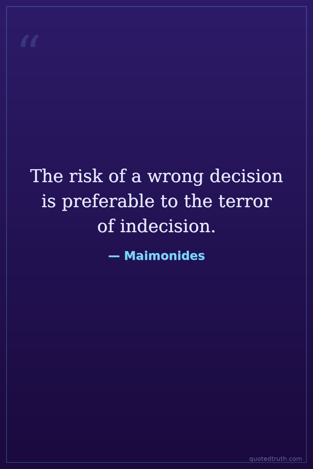 The risk of a wrong decision is preferable to the terror of indecision.