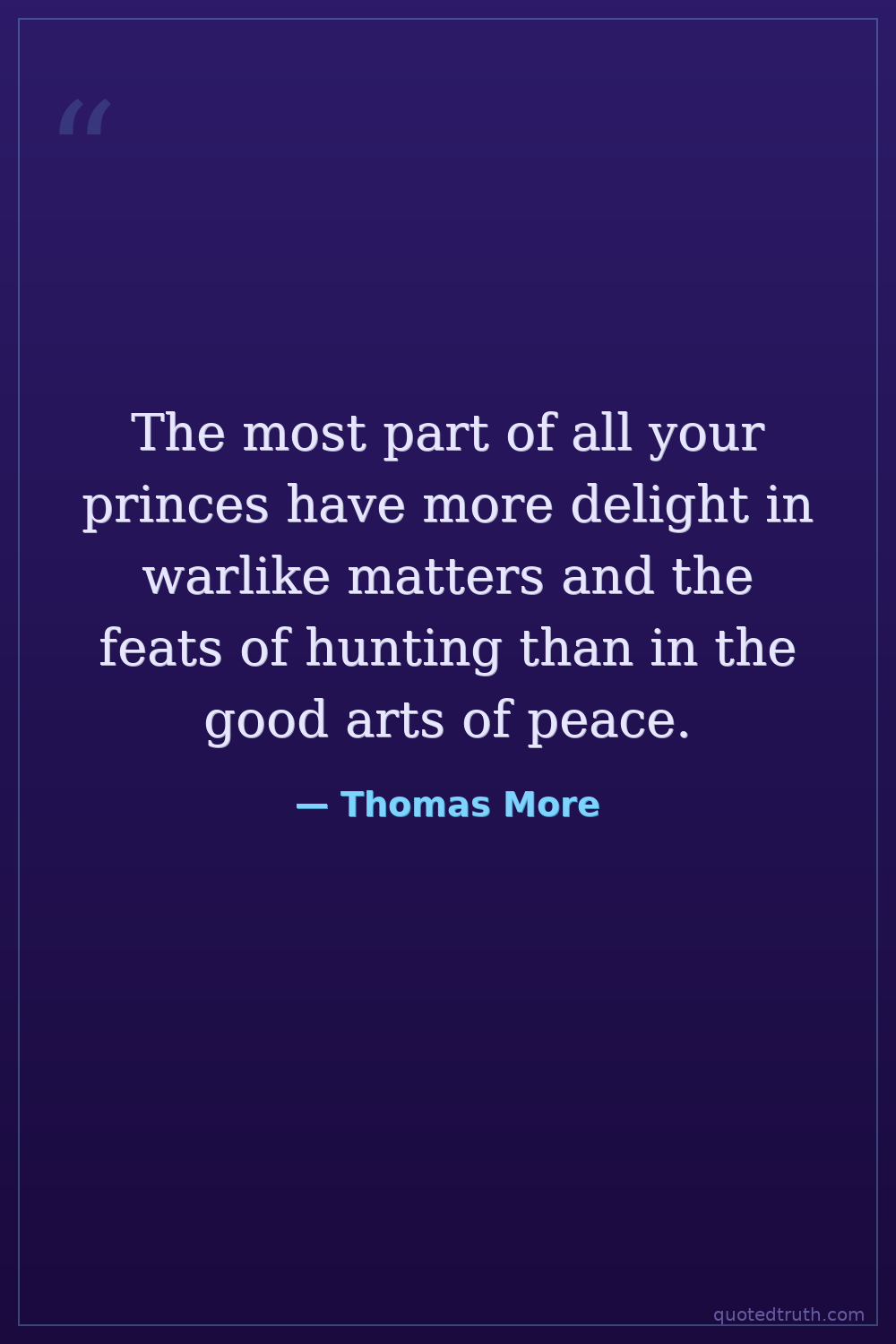 The most part of all your princes have more delight in warlike matters and the feats of hunting than in the good arts of peace.